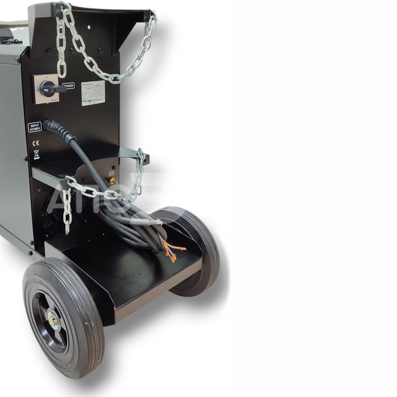 Небольшой вес источника при 31,4 кг и 4-х колесная интегрированная телега с платформой под баллоны, позволяет перемещать сварочный аппарат увеличивая зону сварочных работ.
